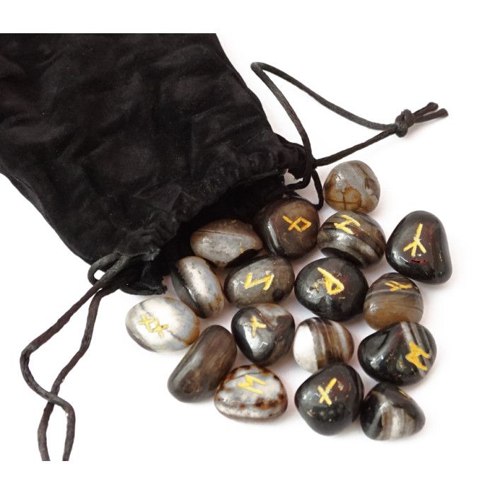 Набір рун для ворожіння з натурального каміння в мішечку Чорний Онікс