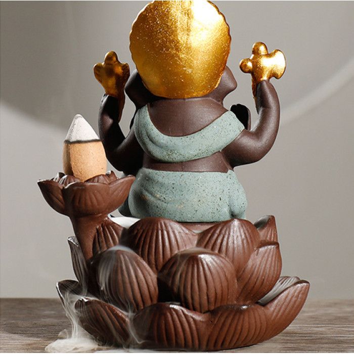 Підставка Рідкий дим кераміка "Ганеша на лотосі Зелений" №2