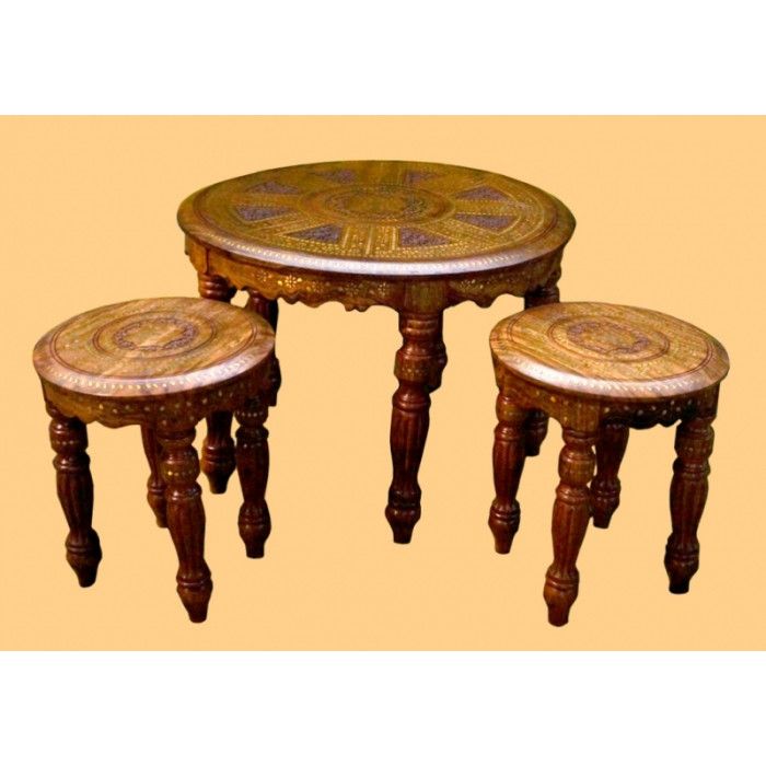 Стіл + 2 стільці з червоного дерева з латунною інкрустацією